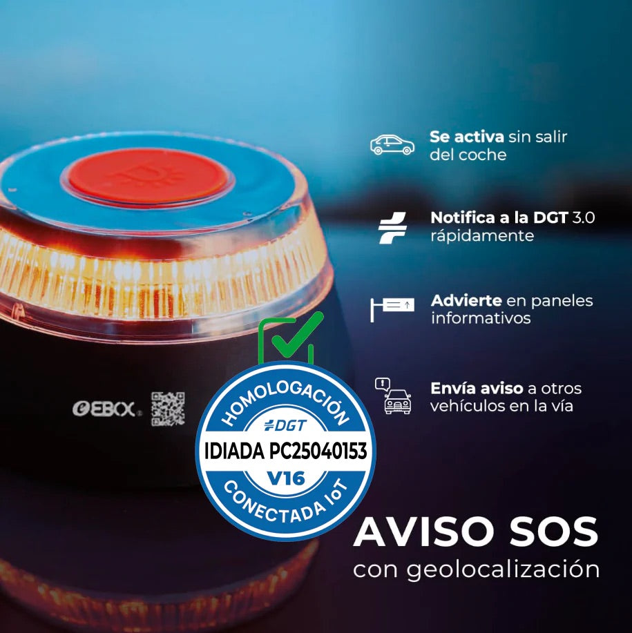 La baliza V16 Ebox, homologada, geolocalizada y lista para ti