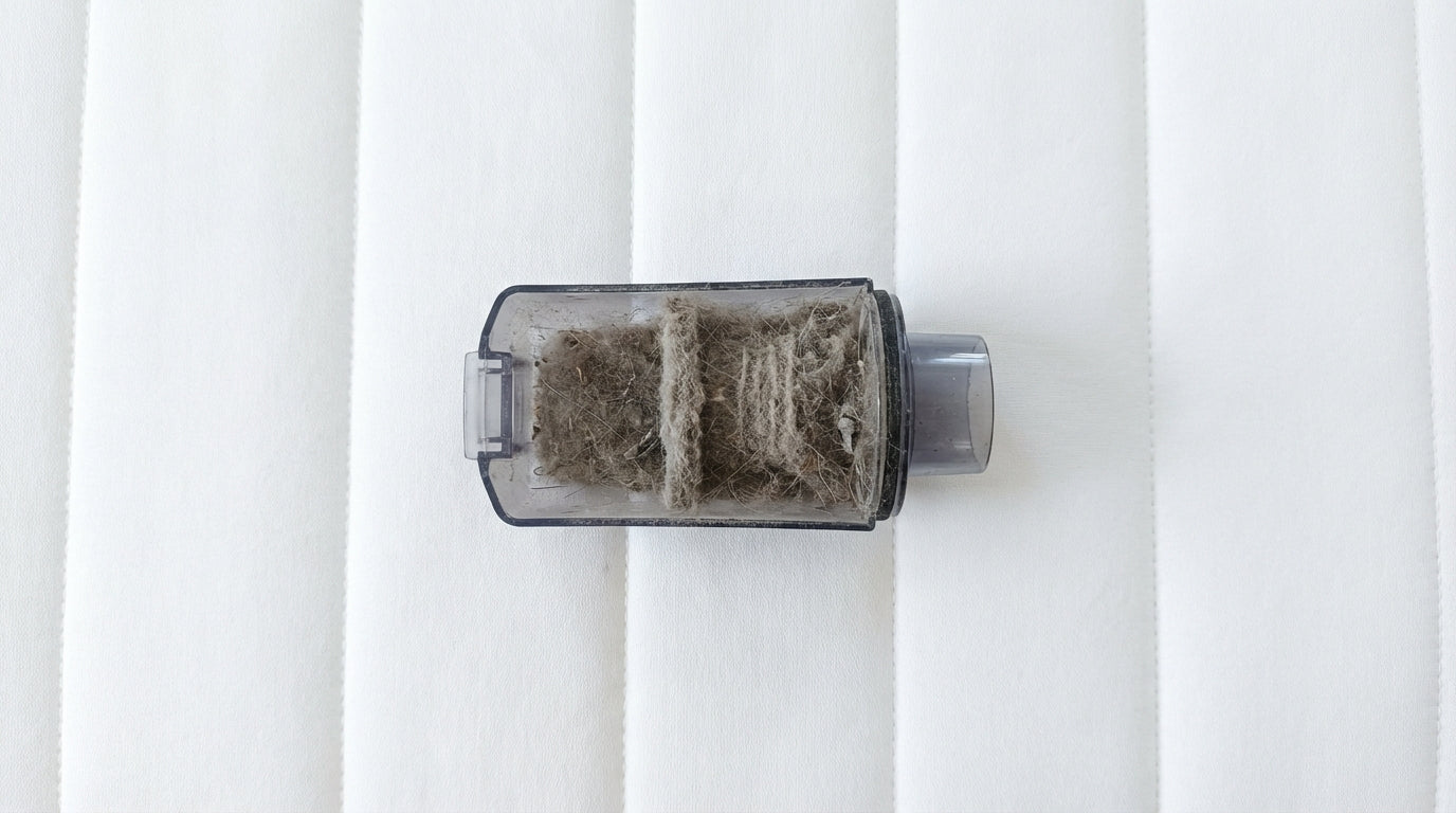 Pasé la mini aspiradora por el colchón "limpio" de mi hijo.
